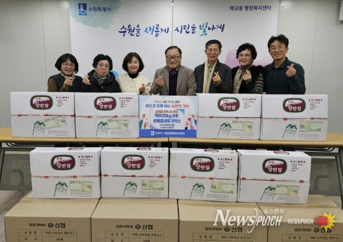 뉴스펀치 박상훈 기자 | 수원시 팔달구 매교동은 지난 30일, 수원동부교회신협본점에서 설명절을 맞아 관내 어려운 이웃들이 따뜻한 명절을 보낼 수 있도록 백미 4kg 40포와 생필품(고무장갑, 지퍼백 등) 5박스를 매교동 행정복지센터에 후원했다고 밝혔다.