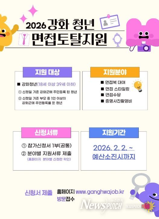 뉴스펀치 조평훈 기자 | 강화군 창업‧일자리센터가 오는 2일부터 '강화 청년 면접 지원-면접 토탈 솔루션'을 시작한다.