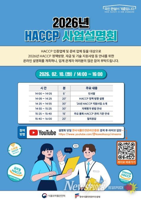 아울러 식약처는 이번 지원사업과 올해 해썹 정책 방향 등을 안내하기 위해 한국식품안전관리인증원과 함께 2월 10일 ‘2026년 해썹 사업 온라인 설명회’를 개최한다.