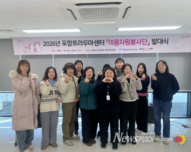 뉴스펀치 박세훈 기자 | 포항시 북구보건소 트라우마센터는 지난달 29일, 지역사회 재난 및 트라우마 회복 활동에 함께할 ‘이음 자원봉사단’ 20명을 대상으로 ‘2026년 이음 자원봉사단 발대식’을 개최했다.