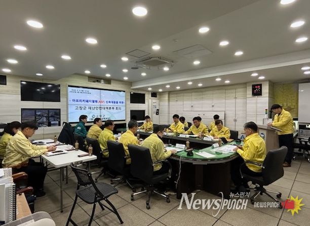 뉴스펀치 최영남 기자 | 고창군이 2일 군청 재난안전상황실에서 김영식 부군수 주재로 행정안전부, 전북특별자치도와 함께 재난안전대책본부 회의를 열고, 아프리카돼지열병(ASF) 확산 방지를 위한 방역관리 상황을 점검했다.