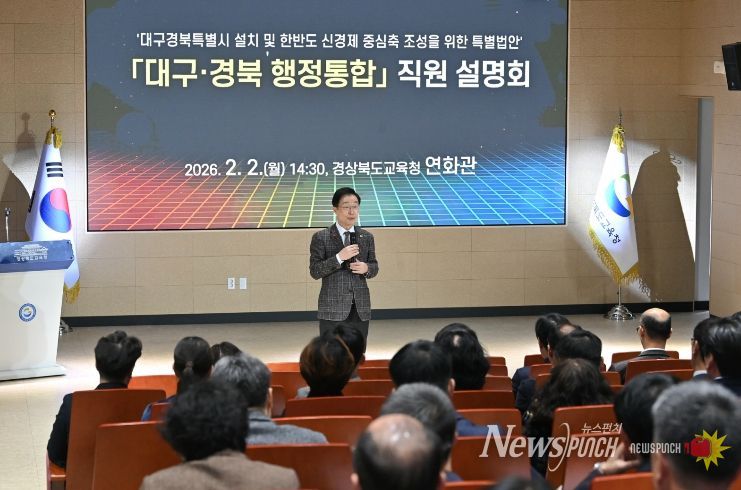 뉴스펀치 박세훈 기자 | 경북교육청은 지난 1월 28일 경상북도의회의 행정통합 합의안 가결 직후, 2일 본청 및 직속기관, 교육지원청의 핵심 간부를 대상으로 행정통합 관련 경과와 주요 쟁점에 대한 직원 설명회를 개최했다.