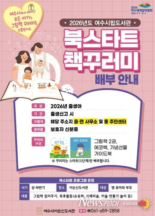 뉴스펀치 김용희 기자 | 여수시는 2026년 출생 영·유아를 대상으로 생애 첫 독서 경험을 지원하는 ‘북스타트(BookStart) 사업’을 추진한다고 밝혔다.