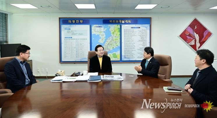 뉴스펀치 최영남 기자 | 목포시의회 조성오 의장은 3일, 국립목포해양대학교 최부홍 신임 총장과 함께 학생 전입 협력 방안 등 대학과 지역사회 간 상생, 지방소멸 대응 등과 관련해 폭넓게 의견을 나눴다.
