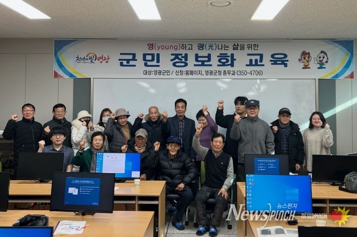 뉴스펀치 김용희 기자 | 영광군은 지난 2월 2일 군청 정보화교육장에서 '2026년 군민정보화교육'을 개강했다고 밝혔다. 이날 첫 교육 과정이 시작된 가운데, 수업에 앞서 간단한 소개와 함께 단체 기념촬영이 진행되는 등 교육장에는 새로운 배움을 시작하는 활기찬 분위기가 이어졌다.