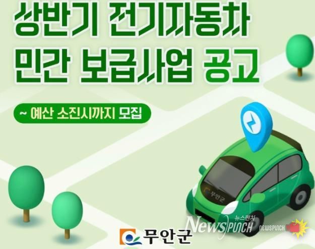 뉴스펀치 김용희 기자 | 무안군은 깨끗한 대기 환경 조성과 온실가스 감축 등 탄소중립 조기 실현을 위해 2월 9일부터 친환경 전기자동차 구매 지원사업을 시행한다.