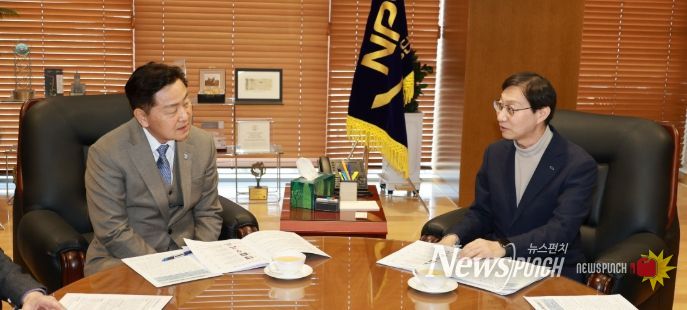뉴스펀치 최영남 기자 | 김관영 전북특별자치도지사가 3일 국민연금공단 본사에서 김성주 국민연금공단 이사장과 만나 지역 상생과 금융생태계 조성을 위한 협력 방안을 논의했다.