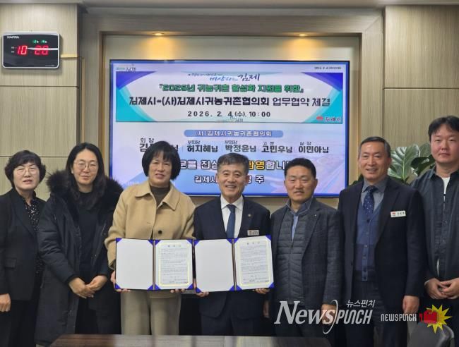 뉴스펀치 정홍균 기자 | 김제시는 4일 귀농귀촌 활성화 지원사업의 효율적인 추진을 위해 김제시와 (사)김제시귀농귀촌협의회 간 업무협약을 체결했다고 밝혔다.