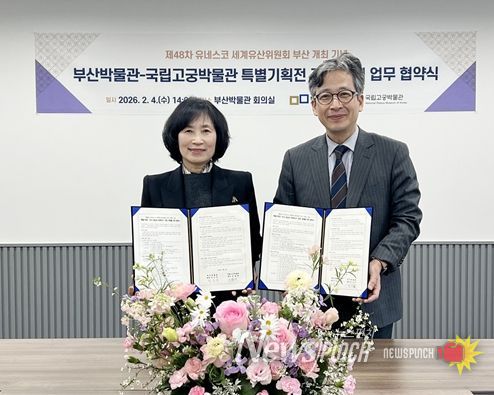 뉴스펀치 김윤걸 기자 | 부산박물관과 국립고궁박물관은 2026년 부산에서 열리는 '제48차 유네스코 세계유산위원회' 개최를 기념하는 특별기획전 '조선 왕실과 세계유산'(가제)의 공동 개최를 위한 업무협약(MOU)을 오늘(4일) 체결했다고 밝혔다.