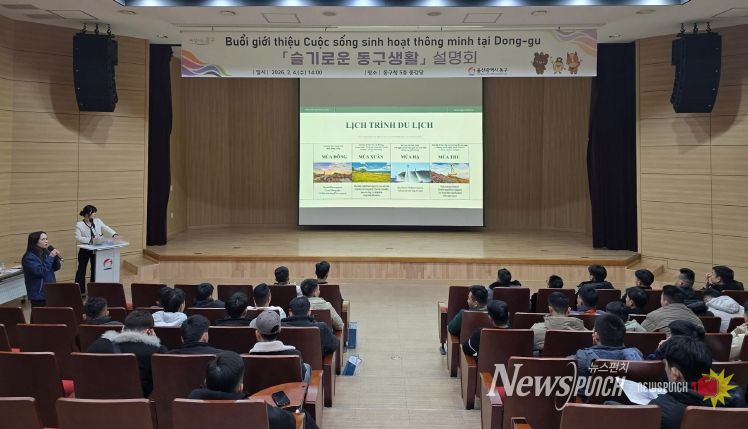 뉴스펀치 김윤걸 기자 | 울산 동구는 2월 4일 오후 2시 동구청 5층 중강당에서 신규 입국한 베트남 국적 외국인 근로자 45명을 대상으로 지역 정착을 돕기 위한 ‘슬기로운 동구 생활’ 설명회를 진행했다.