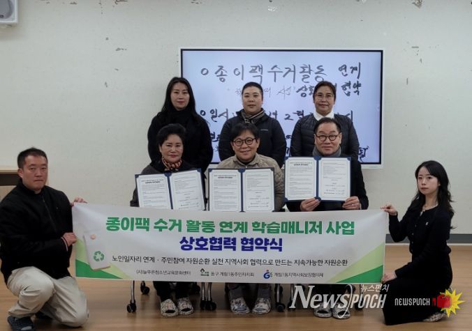 김명기 계림1동 주민자치회장은 “이번 협약은 자원순환이라는 환경 의제에 노인일자리와 주민 학습을 결합한 동구형 생활밀착 자원순환 정책의 의미 있는 사례”라면서 “앞으로도 환경·복지·교육이 유기적으로 연결되는 정책을 통해 주민이 일상에서 변화를 체감할 수 있는 지속가능한 도시를 만들어 가겠다”고 말했다.