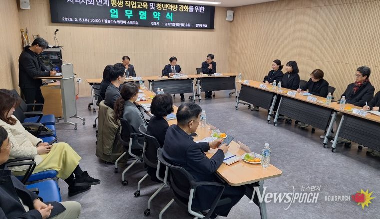 이를 위해 장유출장소는 2026년 2월 5일 장유다누림센터에서 김해대학교 및 김해의생명·산업진흥원과 업무협약을 체결하여 지역 맞춤형 교육과정 공동 운영과 청년 대상 실무·취업 연계 프로그램 발굴에 상호 협력하기로 했다.