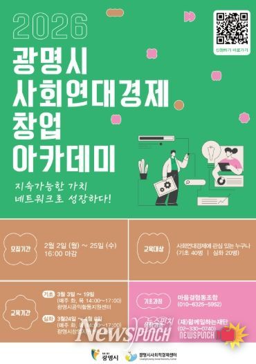 뉴스펀치 박상훈 기자 | 광명시가 ‘2026년 광명시 사회연대경제 창업 아카데미’ 수강생을 오는 25일까지 모집한다.