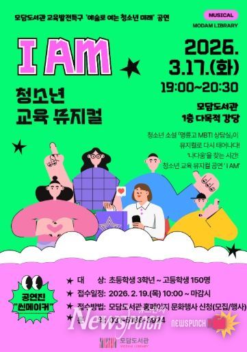 뉴스펀치 박상훈 기자 | 김포시모담도서관은 2026 교육발전특구 사업의 일환으로 청소년을 대상으로 한 공연 ‘청소년 뮤지컬 I AM’을 3월 17일 19시부터 20시 30분까지 모담도서관 1층 다목적강당에서 운영한다.