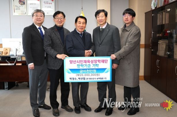 뉴스펀치 박세훈 기자 | 전 양산군수 故 박필용님의 자제들이 부친의 장례식에서 받은 부조금을 지역인재 육성을 위한 장학금으로 기탁해 잔잔한 감동을 주고 있다.