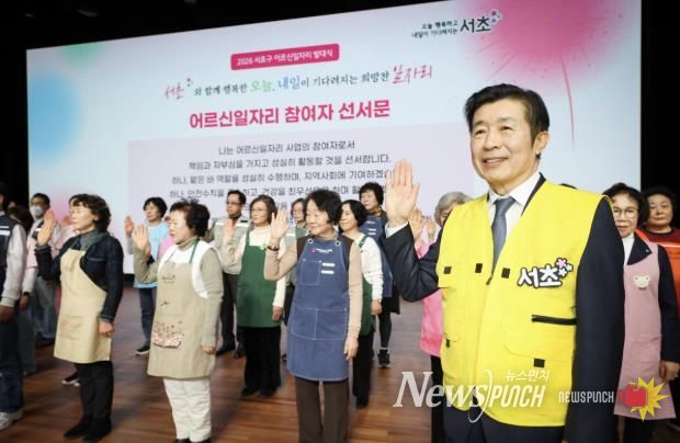 뉴스펀치 박상훈 기자 | 서울 서초구가 5일 15시 서초문화예술회관 아트홀에서 올 한 해 활동할 어르신일자리 참여자들의 사기 진작과 자긍심을 고취하기 위해 ‘2026년 어르신일자리 사업 발대식’을 개최했다고 밝혔다.