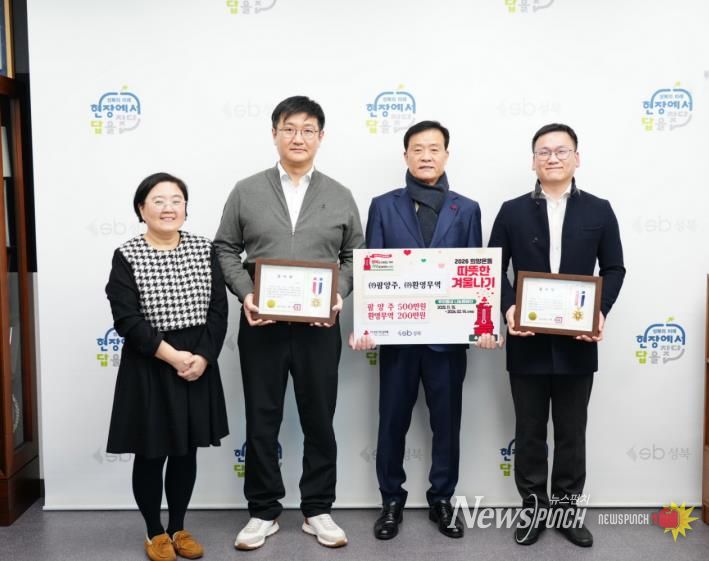 성북구는 전달받은 성금을 서울사회복지공동모금회의 ‘2026 희망온돌 따뜻한 겨울나기’ 사업을 통해 관내 저소득 취약계층의 생계비와 의료비 지원 등에 사용할 예정이다.