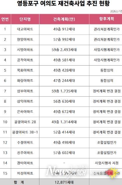 최호권 영등포구청장은 “핵심 업무지구인 여의도의 재건축사업은 주거와 업무, 상업 기능이 조화를 이루는 도시로 나아가는 중요한 전환점”이라며 “각 단지의 추진 단계에 맞춰 사업이 안정적으로 진행될 수 있도록 행정 지원을 이어가겠다”라고 전했다.