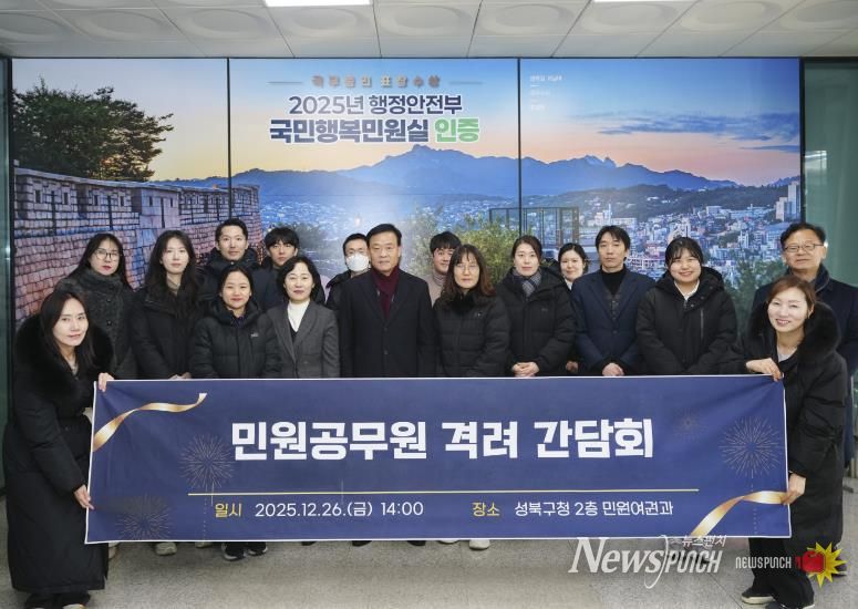 뉴스펀치 박상훈 기자 | 서울 성북구가 행정안전부와 국민권익위원회가 공동 주관한 ‘2025년 민원서비스 종합평가’에서 최고 등급인 ‘가’등급을 받았다.