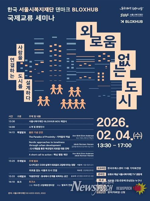 뉴스펀치 박상훈 기자 | 국내 최초로 외로움을 의제 삼아 정책을 추진하고 있는 서울시와 서울시복지재단이 덴마크의 블록스허브(BLOXHUB)와 ‘외로움’을 주제로 국제 교류 세미나를 열고 업무협약을 맺었다.