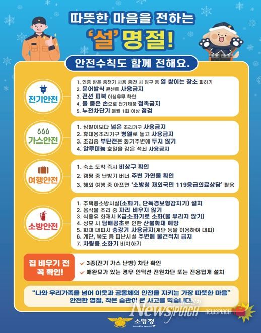 뉴스펀치 박상훈 기자 | 서울특별시 소방재난본부는 시민들이 안전하고 평안한 설 명절을 보낼 수 있도록 아파트 등 주거시설과 다중이용시설 등을 대상으로 한 ‘설 명절 화재안전대책’을 추진한다.