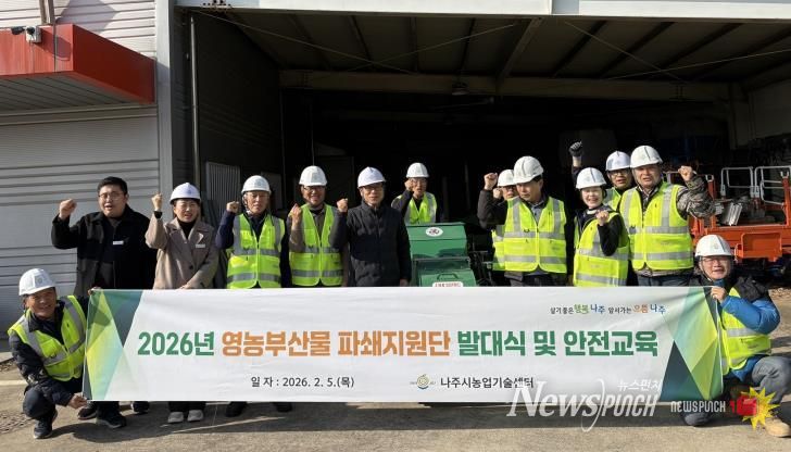 뉴스펀치 김용희 기자 | 전라남도 나주시는 지난 5일 영농부산물 파쇄지원단 발대식을 하고 사업 추진을 위한 안전교육과 장비 점검 등 본격적인 운영 준비를 마쳤다.