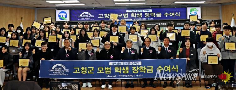 뉴스펀치 정홍균 기자 | 고창군은 6일 군청 5층 회의실에서 ‘2026년 귀뚜라미 문화재단 장학금 수여식’을 개최했다고 밝혔다.