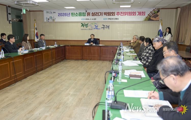 뉴스펀치 강길수 기자 | 전남 구례군은 2월 6일 구례군청 상황실에서 탄소중립 실천과 지속 가능한 농업환경 조성을 위한‘2026 탄소중립 흙 살리기 박람회’의 성공적인 개최를 위해 박람회 추진위원회가 첫 회의를 열었다.