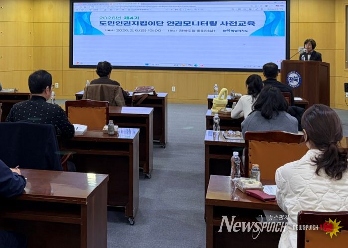 뉴스펀치 정홍균 기자 | 전북특별자치도 인권담당관실은 6일 도청 중회의실에서 도민인권지킴이단 시·군 단장 14명을 대상으로 ‘인권모니터링 전문 강화 교육’을 실시했다.