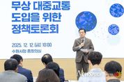 뉴스펀치 김길룡 기자 | 수원특례시는 12일 시청 중회의실에서 ‘수원시 무상대중교통 도입 정책토론회’를 열고, ‘수원형 무상대중교통’ 도입 정책 방향을 공유했다. 이날 정책토론회는 주제 발표와 종합토론으로 진행됐다. 김채만 경기연구원 선임연구위원이 ‘미래 대중교통 정책방향-쿠리치바 대중교통 사례’, 김숙희 수원시정연구원 선임연구위원이 ‘수원시 무상대중교통 도입 방향’을 주제로 발표했다. 수원시는 사회초년생 청년과 어르신의 교통비 부담을 덜어주기 위해 내년 1월 1일부터 무상대중교통 지원사업을 시작한다. 지원 대상은 19~23세 청년, 70세 이상 어르신이다(신청일 기준). 19~23세 청년이 K-패스 교통카드로 대중교통을 이용하면 한 달에 최대 2만 3100원(연 27만 7200원)을 환급한다. 어르신은 농협에서 우대 교통카드(G-PASS)를 발급받아 사용하면 실제 사용 금액에 대해 분기별 최대 6만 9300원(연 27만 7200원 한도)를 지원한다. 종합토론에는 아주대학교 오영태 교수, 한국교통연구원 박준식 본부장, 경기대학교 김정화 교수, 경기도 광역교통정책과 윤태완 과장이 참여했다