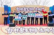 뉴스펀치 박세훈 기자 | 합천군은 합천축협과 함께 지역 대표 브랜드인 합천황토한우의 우수성을 알리고, 지역 한우산업 경쟁력 강화를 기원하고자 ‘합천황토한우 초매식’을 개최했다. 이번 초매식은 1월 29일 합천축협 스마트한우경매시장에서 열렸으며, 김윤철 합천군수, 정봉훈 합천군의장과 합천군의회 의원, 김용욱 합천축협 조합장, 김종배 전국한우협회합천군지부장과 한우 사육농가 등 약 100여 명이 참석해 행사의 의미를 더했다. 합천황토한우는 1999년 특허청 브랜드로 등록되어 합천군과 합천축협이 함께 운영하고 있는 한우 브랜드로, 16개월 이상 자체 사양관리 프로그램에 따라 합천축협이 생산하는 황토가 첨가된 전용 사료를 급여한 한우만을 출하하고 있으며, 부드러운 육질과 뛰어난 향미가 일품이다. 이번 초매식 개최지인 합천축협 스마트한우경매시장은 2021년 실시간 스마트 경매시스템을 도입하여 연간 9천두 이상의 한우를 경매하는 대규모 경매시장으로 매주 첫째주 목요일에는 큰소 경매를, 둘째 넷째주 목요일에는 송아지 경매를 실시하고 있으며, 이날 초매식에는 송아지 274마리가 출품되며 성황리에 진행됐다. 행사는