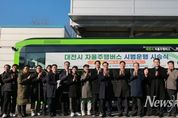 뉴스펀치 이현승 기자 | 대전시와 한국전자통신연구원(ETRI)는 29일 대덕특구 내 주요 연구기관과 생활 거점을 연결하는‘대전형 자율주행 노선버스(A5)’시범 운행을 개시했다. 이번 사업은 ‘충청권 자율주행 상용화 지구 조성사업’의 일환으로 추진됐다. 기존 세종․충북 광역 노선(A2, A3)이 BRT 전용 도로를 통해 도시 간 신속한 이동에 집중했다면, 이번에 신설된 A5노선(카이스트~반석역~세종터미널)은 보행자와 교차로가 혼재된 복잡한 도심 교통 환경 속에서의 실증을 목적으로 한다. 특히 이번 노선은 대전시가 전국 최초로 구축한 실사기반 고정밀 3D 정밀지도가 탑재된 관제시스템이 운행된다. 이를 통해 자율주행 버스의 정확한 위치와 상황을 관제하고, 운영 중 돌발 상황에 유연하게 대응할 수 있는 기술적 기반을 마련했다. 시는 3월 말까지 무상서비스를 통해 기술 안정성과 편의성을 검증한 뒤, 유상 운송으로 전환할 방침이다. 시범 운행 기간인 3월 31일까지는 전 구간 무료(무상운송)로 이용할 수 있다. 초기에는 자율주행 차량 1대를 투입하며, 이용 수요가 본격화되는 3월부터는 운행 횟수를