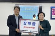 뉴스펀치 탁상훈 기자 | 라의숙 군포시 궁내동통장협의회장은 10월 1일 군포e비즈니스고등학교에 장학금을 전달하며 지역 청소년들의 꿈을 응원하는 뜻깊은 나눔을 실천했다. 이번 장학금은 라의숙 통장이 ‘궁내동 마을의제 발굴 경진대회’에서 금상을 수상하며 받은 상금 50만원 전액을 기부한 것으로 지역사회 발전을 위한 아이디어가 다시 지역 인재를 위한 지원으로 이어졌다는 점에서 더욱 의미가 깊다. 장학금은 군포e비즈니스고등학교 내 우수한 학생들에게 수여될 예정이다. 라의숙 통장은 평소 지역사회를 위한 다양한 활동에 앞장서며 교육·복지·공익 분야에서 꾸준한 기여를 이어오고 있다. 이번 장학금 기부 역시 지역 청소년들의 학업과 미래를 응원하는 실천적 나눔의 일환으로 그녀의 지역사랑이 고스란히 담겨 있다. 라의숙 회장은 “마을을 위한 고민이 다시 학생들을 위한 희망으로 이어져 기쁘다”며 “앞으로도 지역 청소년들을 위해 학생들의 학업 성취를 응원하는 지속적인 나눔활동과 관심을 이어가겠다”고 전했다.