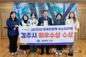 뉴스펀치 김길룡 기자 | 경주시가 2025년 경상북도 외국인정책 우수 시‧군 평가에서 시부 최우수상을 수상하며 외국인 정책 전반에서 우수한 성과를 인정받았다. 이번 평가는 경상북도가 도내 22개 시·군을 대상으로 외국인‧이민정책과 다문화 사업 추진 성과를 종합적으로 점검한 것이다. 주요 평가 항목은 △비자사업 추진 실적을 포함한 외국인 수 △외국인 정책 추진 노력과 성과 △시‧군별 우수사례 등이다. 경주시는 외국인 전담 조직을 구성하고 지원 조례를 시행하는 등 제도적 기반을 마련했으며, 외국인 친화 사업, 한국어 교육, 다문화 인식개선 교육 등을 체계적으로 추진해 전반적인 정책 성과에서 높은 평가를 받았다. 특히 올해 새롭게 도입된 지역특화 숙련기능인력(E-7-4R) 비자 추천 실적이 눈에 띄는 성과로 평가됐다. 시는 도내 최다인원인 130명을 배정받아, 12월 현재 기준 105명을 추천하며 외국인 인재의 지역 정착을 적극 지원했다. 지역특화 숙련기능인력(E-7-4R) 비자는 인구감소지역과 인구관심지역에 거주하는 외국인 근로자가 장기 체류하며 가족과 함께 지역사회에 안정적으