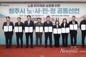 뉴스펀치 강영선 기자 | 청주시 노사민정협의회는 16일 임시청사 대회의실에서 2025년 제2차 청주시 노사민정협의회를 열고, 청주시 노동정책의 첫 중장기 종합계획인 ‘청주시 노동존중정책 기본계획(2026~2030)’에 대한 심의를 진행했다. 회의는 이범석 청주시장 주재로 홍성수 한국노총 충북본부 청주지역지부 의장, 이태희 충북경영자총협회 회장을 비롯해 노동계, 경영계, 시민사회, 지방정부를 대표하는 노(勞)·사(使)·민(民)·정(政) 위원 9명이 참석한 가운데 열렸다. 이날 심의된 청주시 노동존중정책 기본계획은 그동안 개별적·단편적으로 추진돼 온 노동 관련 정책을 종합·체계화한 청주시 최초의 중장기 계획으로, 향후 5년간 청주시 노동정책의 비전과 추진 방향을 담고 있다. 아울러 2026년 노사민정협력 활성화 사업 추진계획에 대한 심의를 통해, 기본계획의 정책 방향을 현장 중심의 협력사업으로 구체화하는 방안도 함께 논의했다. 특히 플랫폼·특수고용·파견 노동자 등 노동 취약계층의 권익 보호와 안전한 노동환경 조성을 위해 노사민정이 공동의 책임 아래 협력해 나갈 것을 다짐하는 ‘노동 취약계층 보호를 위한