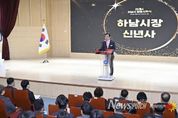 뉴스펀치 김길룡 기자 | 하남시는 1월 2일 오전 시청 별관 대강당에서 공직자와 출자·출연기관 임직원 등 300여 명이 참석한 가운데 ‘2026년 시무식’을 개최하고 새해 업무에 본격적으로 돌입했다. 이날 시무식은 개식 및 국민의례를 시작으로 신년사, 새해 공동다짐 낭독, 신년인사회 순으로 진행됐다. 시는 이번 시무식을 통해 2026년 시정 운영 방향을 전 직원과 공유하고, 시민 중심의 행정 서비스 제공과 자족도시 기반 구축을 위한 의지를 다졌다. 이현재 하남시장은 이날 신년사를 통해 먼저 “지난 한 해 동안 각자의 자리에서 묵묵히 소임을 다해준 공직자 여러분의 노고에 감사드린다”고 전했다. 이어 하남시가 직면한 현실을 냉정히 진단하며 시정의 변화를 주문했다. 이현재 시장은 “최근 인구는 급증했으나 1인당 지역내총생산(GRDP)은 여전히 낮은 수준에 머물러 있다”라며 “일자리와 산업 기반이 없는 도시는 한계가 있는 만큼, 전 공직자가 일치단결해 자족경제 도시로의 도약을 이끌어내야 한다”고 역설했다. 또한 “올해는 하남시가 자족경제 도시로 전환할 수 있는 중요한 골든타임인 만큼, 모든 행정 역량을 집