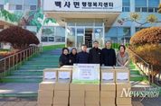 뉴스펀치 김길룡 기자 | 이천시 백사면 조읍리에 소재한 반석교회는 연말을 맞아 지역의 어려운 이웃을 돕고자 2025년 12월 30일 백사면행정복지센터에 라면 60박스(총 1,200봉)를 기탁했다. 반석교회는 성탄절을 맞아 ‘라면트리 나눔행사’를 개최했다. 이번 행사는 교회 성도들의 자발적인 참여로 이루어졌으며, 라면을 모아 트리 모양으로 완성 후 나눔의 기쁨을 실천하고자 기탁식을 진행하게 됐다. 황의일 담임목사는 “교회 성도들의 작은 실천이 모여 지역사회에 따듯한 변화를 만들어 갈 수 있어 감사하다”라고 말하며, 이번 물품 기탁을 시작으로 앞으로도 지역사회를 위해 지속적인 봉사의 손길을 내밀겠다는 뜻을 비쳤다. 이천수 백사면장은 “관내 어려운 이웃을 위해 따뜻한 나눔을 실천해 주신 반석교회 성도들에게 감사드리며, 기탁된 물품은 도움이 필요한 주민들에게 소중히 전달하겠다”라고 밝혔다.