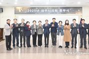 뉴스펀치 김길룡 기자 | 파주시의회는 12월 31일 오후 2시, 파주시의회 1층 세미나실에서 2025년 종무식을 개최하면서 우수의원 표창에 대한 표창 전수식을 진행했다. 우수의원 표창은 대한민국 시·군자치구의회의장협의회장 표창 1건, 경기도 시·군의회의장협의회장 표창 3건, 경기도 북부시·군의장협의회장 표창 3건으로, 2025년 한 해 동안 의욕적인 의정활동을 펼친 지방의회 의원의 노고를 격려하고 우수한 의정활동 사례를 알리고자 마련됐으며, 각 협의회장을 대신해 파주시의회 박대성 의장의 대독 전수로 수여됐다. 먼저, 손성익 의원은 지방의회 의원으로서 투철한 사명감과 봉사정신을 발휘하여 의정 발전과 주민 화합을 위해 노력한 공으로 대한민국 시·군자치구의회의장협의회 대한민국지방의정봉사상 수상의 영예를 안았다. 이어서, 이익선 의원(공약실천 부문), 이정은 의원(의정활동 개선 부문), 오창식 의원(행정감사 부문)은 적극적인 의정활동을 펼친 공로가 인정되어 경기도 시·군의회 의정활동 우수의원 수상자로 선정됐다. 마지막으로, 이혜정 의원(행정감사 부문), 윤희정 의원(의정활동개선 부문), 최유각 의원(지역경