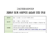 뉴스펀치 김길룡 기자 | 고성군이 운영하는 고성군종합사회복지관은 2025년 11월 24일부터 12월 5일까지 2주간 2026년 동계 사회복지 현장 실습생을 모집한다고 밝혔다. 실습 기간은 동계방학 기간인 2026년 1월 5일부터 1월 30일까지 총 20일, 160시간이며, 모집대상은 사회복지학을 전공하고 전공과목 최소 18학점 이수 및 사회복지 현장실습 과목 수강 예정자이다. 실습비는 1인당 8만 원(최저 기준)이며, 사회복지 현장실습과 관련한 자세한 사항은 고성군종합사회복지관 홈페이지에서 확인하거나 본관으로 문의하면 된다.