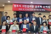 뉴스펀치 김보성 기자 | 원주시는 지난 17일 시청 7층 회의실에서 시민감사관 공로패 수여식을 개최했다. 시는 투명하고 깨끗한 행정을 위해 헌신적이고 적극적으로 활동한 제5기 시민감사관 22명에게 공로패를 수여했다. 원주시 시민감사관 제도는 2015년부터 운영됐으며, 이를 통해 시정의 감시 기능을 강화하고 민생 현장의 불편을 신속히 해결해 왔다. 특히 시민감사관은 시정에 대한 독립적인 감사를 통해 주민들의 고충을 해결하고 시정의 투명성을 높이는 데 중요한 역할을 했다. 김문기 원주부시장은 “시민들의 목소리를 가까이에서 경청하고 불편을 해결하는 데 헌신하신 노고에 깊이 감사드린다”라며, “앞으로도 원주시 발전에 이바지해 주시길 부탁드린다”라고 말했다.