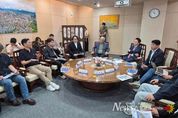 뉴스펀치 김보성 기자 | 고성군은 9월 17일 오후 인제군 소재 육군 제3군단 사령부를 방문해 관ㆍ군 상생협력 간담회를 실시하고, 3군단장(중장 서진하)에게 감사패를 수여했다. 그동안 고성군은 3군단과 함께 접경지역 현안문제 처리에 있어 지역주민들의 편의와 안전을 최우선으로 한 가운데 긴밀한 협력관계를 유지해 왔다. ▲민통선 비행금지구역(NFL) 내 산불진화헬기 투입시간 단축, ▲화진포해양누리길 조성사업을 위한 헬기 비행 허가, ▲백두대간 향로봉 트레킹 참가인원 확대와 안전 지원, ▲미활용 군용지 반환 협력, ▲통일전망대 대피소 정비와 안보관광코스 발굴 등은 대표적인 성과로 꼽힌다. 특히, 민통선 내 비행금지구역으로 인해 산불 발생 시 헬기 투입이 지연되어 접경주민 안전에 큰 우려가 있었으나, 제3군단의 협력으로 투입 시간이 크게 단축되면서 군민의 생명과 재산을 지키는 획기적인 전환점을 마련했다. 또한 지역 최대 숙원사업 중 하나였던 화진포해양누리길 조성사업에서는 군사시설보호구역 내 헬기 비행을 허가해 공기 단축과 사업비 절감을 이끌어내며 지역발전의 새로운 동력을 제공했다. 아울러 통일전망대 대피소