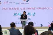 뉴스펀치 김보성 기자 | 강원특별자치도교육청교육연수원은 10일부터 12일까지 신규교(원)장 직무연수를 운영했다. 이번 신규교(원)장 직무연수는 2025년 9월 1일 자로 도내 유‧초‧중‧고등학교에 신규 임용된 교(원)장을 대상으로 진행됐으며, 유치원장 1명, 초등 교장 31명, 중등 교장 25명, 특수교장 1명 총 58명이 참석했다. 이번 연수에서는 ‘미래를 여는 학교 더 나은 강원교육을 위한 학교장의 역할’을 주제로 신경호 교육감의 특강이 진행됐다. 교육감은 새롭게 출발하는 학교장들에게 응원의 메시지를 전하며, 더 나은 강원교육 실현을 위한 지난 3년간의 변화와 앞으로의 비전을 공유하고, 교사 성장 지원과 혁신적 학교 문화 조성을 당부하며 강원교육의 미래를 함께 열어가자고 강조했다. 이 밖에도 △학생 맞춤형 통합 지원 △학교 내 노사관계 △학교 회계의 이해 △학교 안전 및 위기 학생을 지원하는 학교장의 역량 강화에 관한 실무 중심의 연수가 진행됐다. 민섭 원장은 “이번 연수를 통해, 더 나은 강원교육 실현을 위한 교장·원장의 교육철학과 신념, 실천 의지가 중요하다”고 말하며, “교(원)장의 역할