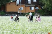 뉴스펀치 김보성 기자 | 지난 9월 5일 개막한 ‘2025 평창 효석문화제’가 비가 오는 궂은 날씨에도 주말까지 6만 명의 관람객을 끌어모으며 가을 축제의 열기를 이어가고 있다. 축제 초반에는 기상 여건으로 인해 메밀꽃이 충분히 피지 않아 아쉬움이 있었으나, 최근 기온과 날씨가 안정되면서 봉평 일대에 메밀꽃이 활짝 만개하여 관람객들에게 아름다운 초가을의 풍경을 선사하고 있다. 평창군은 축제 개막 5일 만에 8만여 명의 관람객이 봉평 효석문화마을과 흥정천 일대를 찾은 것으로 집계됐다고 9일 밝혔다. 하루 평균 2만 명, 주말 하루 최고 관람객 수는 3만 5천 명을 기록했다. 올해로 26회를 맞은 평창 효석문화제는 오는 9월 14일까지 10일간 열린다. 축제장 바로 옆 봉평 전통시장에서는 평창 농특산물과 향토 음식 판매, 메밀 요리 체험 행사가 인기를 끌고 있으며, 돔 공연장에서는 전통예술과 퓨전 공연이 교차하며 지역 예술인과 주민이 함께하는 무대가 마련됐다. 축제 기간 중 제46회 전국 효석 백일장과 제26회 이효석문학상 시상식이 열려 문학인의 자긍심을 높이고 있으며, ‘삼행시 대회’, ‘사진 콘테스