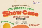 뉴스펀치 김보성 기자 | 강원음악창작소가 오는 9월 13일 춘천시청 광장에서 ‘2025 강원음악창작소 쇼케이스’를 개최한다. 이번 행사는 강원음악창작소 ‘음원 제작 지원사업’에 선정된 강원 뮤지션들의 신곡을 공개하는 무대로, 뮤지션들의 역량을 널리 알리기 위해 마련됐다. 공연에는 도내 실력파 뮤지션 5팀(△샹송제이 △강휘 △정의만 △해비치밴드 △곽다한밴드)이 참여한다. 이들은 직접 작사·작곡한 신곡을 현장에서 라이브로 선보이며, 개성 있는 음악 세계를 펼쳐 보일 예정이다. 이번 행사는 ‘2025 ONE도심 페스타’와 연계하여 지역 주민과 관광객 모두 자유롭게 즐길 수 있는 개방형 야외 공연으로 진행되며, 뮤직비디오 상영 및 뮤지션들의 굿즈 등 다양한 홍보물도 전시된다. 강원음악창작소 관계자는 ‘이번 쇼케이스를 통해 도내 유망 뮤지션들이 널리 알려지고, 지역 음악의 창작 생태계가 활기를 찾는 계기가 되길 바란다’고 밝혔다. 한편, 문화체육관광부와 한국콘텐츠진흥원이 지원하고 강원정보문화산업진흥원이 운영하는 강원음악창작소는 강원지역 뮤지션의 창작 활동, 음반 제작, 공연 지원을 통해 지역