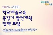 뉴스펀치 김완규 기자 | 서울특별시교육청은 ‘예술로 잇다, 감성을 품다, 미래를 열다’를 주제로 10월 30일, 제2서울창의예술교육센터에서 『2026~2030 학교예술교육 중장기 발전계획 비전 선포식』을 개최한다. 선포식은 ‘AI 아트랩 서울’건립을 통해 미래형 예술교육의 새 장을 여는 서울시교육청의 비전을 공유하는 자리로, 예술교육 분야 교수 및 전문가, 학생, 학부모, 초‧중‧고‧특수 교원 등 200여 명이 참석할 예정이다. 서울시교육청 2026~2030 학교예술교육 중장기 발전계획은 ‘예술이 일상이 되는 학교’를 비전으로 제시하고, △'미래역량 기반 학교예술교육' △'마음을 채우는 서울예술교육' △'지역과 상생하는 예술생태계'의 세 가지 추진 전략을 통해 서울 학교예술교육의 발전 방향을 구체화했다. 이번 계획은 예술이 학생의 마음 성장을 돕는 교육적 힘이 되도록, 음악·미술·연극·영화·뮤지컬 등 다양한 예술교육 경험을 통해 정서적으로 어려움을 겪는 학생도 예술로 마음을 채우고 성장할 수 있도록 지원하는데 중점을 두고 있다. 나아가 모든 학생이 예술을 누리며 일상에서 직접 예술을 경험할 수 있게 하는 것을