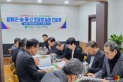 뉴스펀치 김용희 기자 | 전남 함평군이 미래 농업 선도와 농림·축산·산림 발전을 위한 농협중앙회·지역 농·축협·산림조합과 함께하는 신년하례 농정 간담회를 개최했다. 함평군은 “지난 26일 함평 관내 식당에서 열린 농‧축‧산 농정 간담회가 성공적으로 마무리됐다”고 27일 밝혔다. 이번 간담회에는 이상익 함평군수, 곽선미 농협중앙회 함평군지부장, 지역 농·축협장, 군 산림조합장 등 22명이 참석했다. 주요 내용으로는 ▲올해 농림축산 지원 사업 안내 ▲농협 미곡종합처리장(RPC) 시설 현대화 ▲총체벼 생산단지 조성 등이 포함됐다. 농업인 근로 여건 개선을 위한 이동식화장실 설치 지원, 고품질 조사료 생산과 안정적 쌀값으로 총체벼 재배 확대를 위한 직파기 지원사업 등 농업인의 복지와 농업 경쟁력 강화를 위한 사업도 함께 논의됐다. 군은 노후화된 농협 RPC 시설을 현대화하고 쌀 품질 향상과 수출 확대, 쌀값 안정화 및 축산 농가의 사료 공급을 위한 총체벼 생산단지 조성 사업을 추진할 계획이다. 특히 군은 2006년 설치되어 노후화된 농협 통합 RPC 시설을 2027년까지 현대화해