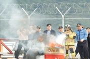 뉴스펀치 김용희 기자 | 완도해양경찰서는 17일 오전 10시 완도해경 전용부두에서 자체제작 ‘폼 소화장비’를 활용한 소화 훈련을 실시했다고 밝혔다. 완도해경에 따르면, 현재 화재 발생 시 사용 중인 분말형 또는 CO2 소화기의 경우 FRP(섬유강화플라스틱) 재질 선체에서 발생한 화재에는 효과가 제한적이라는 한계가 있었다. 이에, 완도해경은 현장 대응에 적합한 대안을 마련하고자 기존 배수펌프 해수 유입 노즐에 해수와 소화약제를 혼합할 수 있는 추가 밸브를 설치한 ‘폼 소화장비’를 개발했다. 이날 훈련에는 완도해양경찰서장을 비롯해 각 기능별 관계자 등이 참석한 가운데 기존 장비(유처리제살포기, 에어폼 노즐 등)와 자체 제작 장비의 분사력, 화재 진압 성능 등을 비교ㆍ점검했다. 특히, FRP를 활용한 모의 화재 상황을 부여하고, 실제 해상 조건과 유사한 환경에서 ‘폼 소화장비’를 운용해 화재 진압 효과를 검증했다. 그 결과, 해수와 소화약제가 일정 비율로 혼합ㆍ분사되어 연소 억제력과 냉각 효과가 우수한 것으로 확인됐다. 완도해경 관계자는 “이번 시연은 단순한 장비 비교를 넘어,