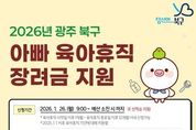 뉴스펀치 김용희 기자 | 광주광역시 북구가 육아휴직 중인 남성에게 최대 90만 원의 장려금을 지급한다. 25일 북구에 따르면 오는 26일부터 ‘2026년 아빠 육아휴직 장려금’ 신청이 시작된다. 이번 사업은 양육 친화 환경을 조성하고 휴직에 따른 경제적 부담을 완화하기 위해 지난해 북구가 광주에서 처음으로 시행한 육아 지원 정책이다. 올해는 5,400만 원의 예산을 투입해 60여 명에게 장려금을 제공할 계획이다. 지원 대상은 2025년 1월 1일 이후 육아휴직자 중 휴직 시작일 이후 1개월 이상 또는 종료 후 12개월이 지나지 않은 남성이다. 또한 고용보험법에 따른 육아휴직 급여 지급 대상이면서 신청일 기준 6개월 이상 북구에 주민등록을 두고 있어야 하고 아동도 북구 주민이어야 한다. 다만, 육아휴직급여 특례 적용 대상자(6+6육아휴직)는 특례 기간이 종료된 달의 다음 달부터 신청할 수 있다. 장려금 신청은 정부24를 통한 온라인 신청만 가능하고 오는 26일부터 예산 소진 시점까지 지원자를 선착순 모집한다. 최종 선발된 지원 대상자에게는 매월 30만 원씩 최대
