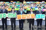 뉴스펀치 김용희 기자 | 광주·전남 행정통합을 주도할 민간 차원의 공식 기구가 닻을 올렸다. 전라남도와 광주광역시는 16일 오후 김대중컨벤션센터에서 시·도민의 뜻과 역량을 하나로 결집할 ‘광주·전남 행정통합 추진 범시도민 협의회’ 발대식을 열고, 대한민국 최초의 통합 광역지방정부 탄생을 위한 범시도민 차원의 논의에 본격 착수했다. 범시도민 협의회에는 시·도, 시도교육청, 시도의회, 시민사회단체, 경제·산업계, 학계, 교육계, 노동계, 청년·여성·원로 대표 등 다양한 분야의 광주·전남 인사 500명이 참여해 행정통합 논의의 공론화와 사회적 합의를 이끄는 역할을 맡는다. 이날 발대식은 공동대표 10명에 대한 위촉장 수여, 행정통합 추진경과 보고, 주요 특별법안 설명 및 의견수렴, 결의문 낭독, 퍼포먼스 및 기념촬영 순으로 진행됐다. 결의문에는 ▲광주시와 전남도의 상생 발전과 국가균형발전을 위한 행정통합 추진 ▲시·도민 공감과 참여를 바탕으로 한 민주적 논의 과정 존중 ▲행정통합 특별법 제정 등 제도적 기반 마련을 위한 공동 대응 ▲지역 간 갈등을 넘어 미래세대를 위해 지속할 수 있는 통합 실현에 함께