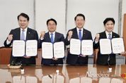 뉴스펀치 김용희 기자 | 광주시·전남도·광주시교육청·전남도교육청이 광주·전남 행정 대통합에 함께 하기로 했다. 강기정 광주광역시장, 김영록 전라남도지사, 이정선 광주시교육감, 김대중 전남도교육감은 14일 오후 국회에서 ‘4자 협의체 간담회’를 갖고, 통합 특별시와 특별시교육청 출범을 목표로 ‘광주.전남 대통합을 위한 공동 합의문’을 발표했다. 이들은 공동 합의문에서 4개 행정기관은 광주.전남 통합 광역지방정부와 광역지방교육청 출범이 역사적 사명임을 공감하며, 상호 존중과 신뢰를 바탕으로 최적의 통합안을 마련하기로 했다. ‘4자 협의체’는 ‘(가칭)광주전남특별시 설치를 위한 특별법’이 2026년 2월 내 국회를 통과할 수 있도록 상호 긴밀히 협력하고, 시.도의회와 함께 공감대 확산을 위해 설명회, 토론회, 간담회 등 공청회를 시·군·구별로 개최한다. 또 행정‧교육행정 통합 이후에도 광주 5개 자치구와 전남 22개 시.군이 스스로의 정체성을 지켜 나가도록 공동 협력하고, 교육이 지역발전의 초석임을 인식하며 광주.전남 행정.교육행정 통합 과정에서 교육자치를 보장하기로 명시했다. 합의문에는 통